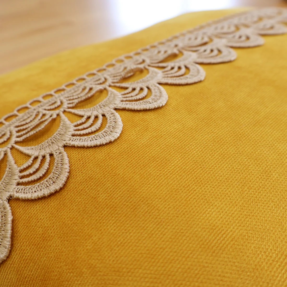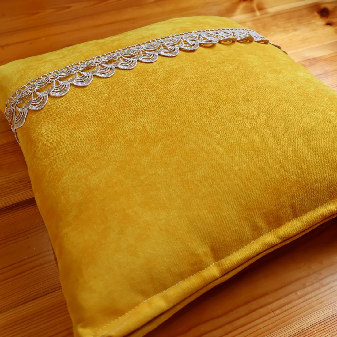 Poszewka na poduszkę z kremową gipiurą musztardowy 333