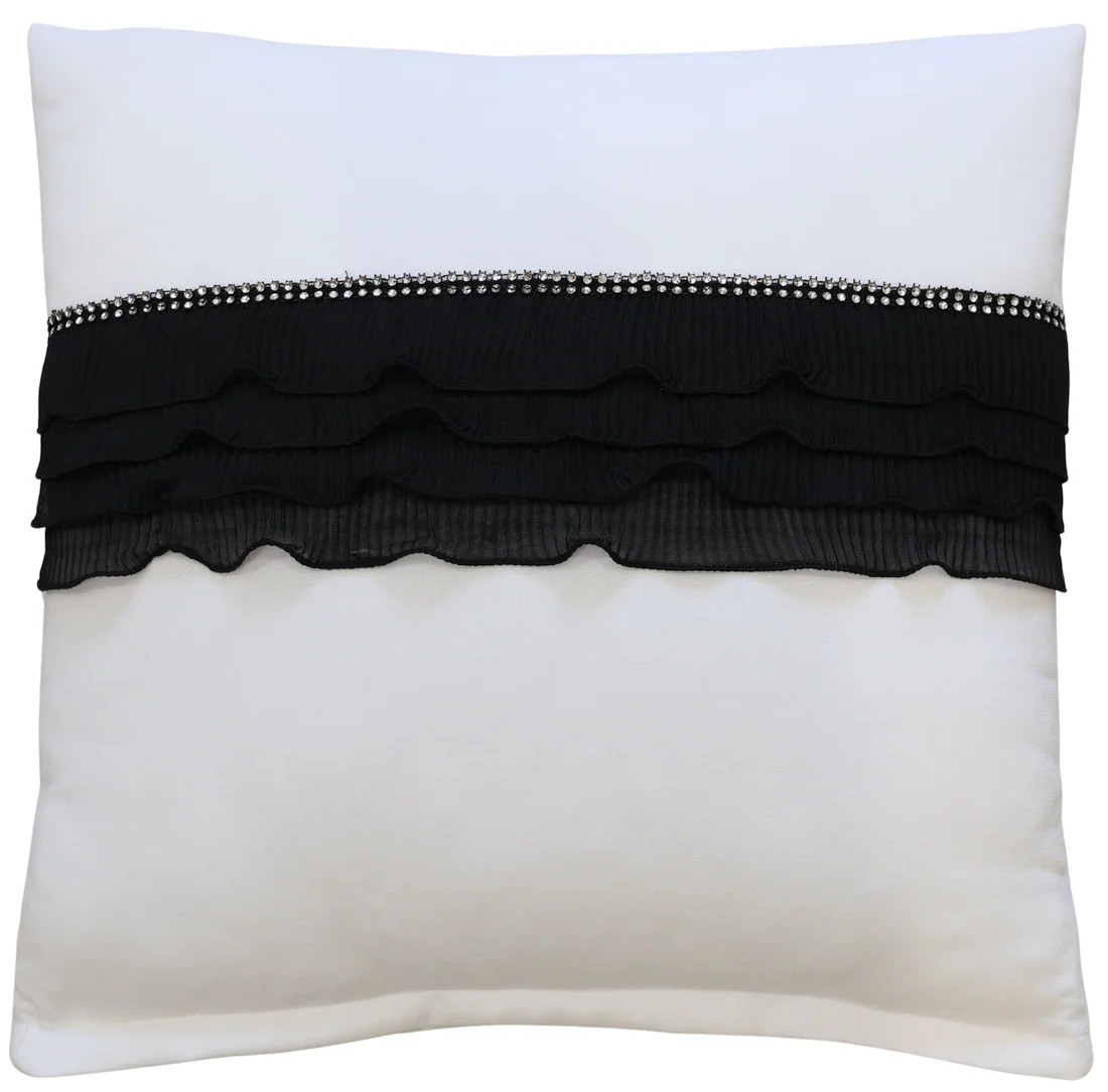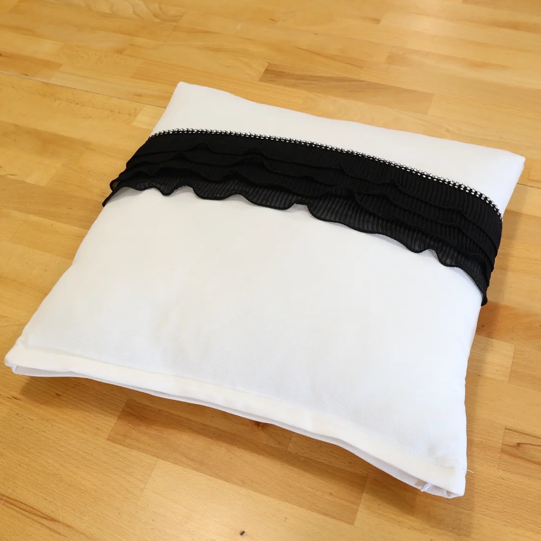 Poszewka na poduszkę z czarna falbanką cyrkonie biały 335
