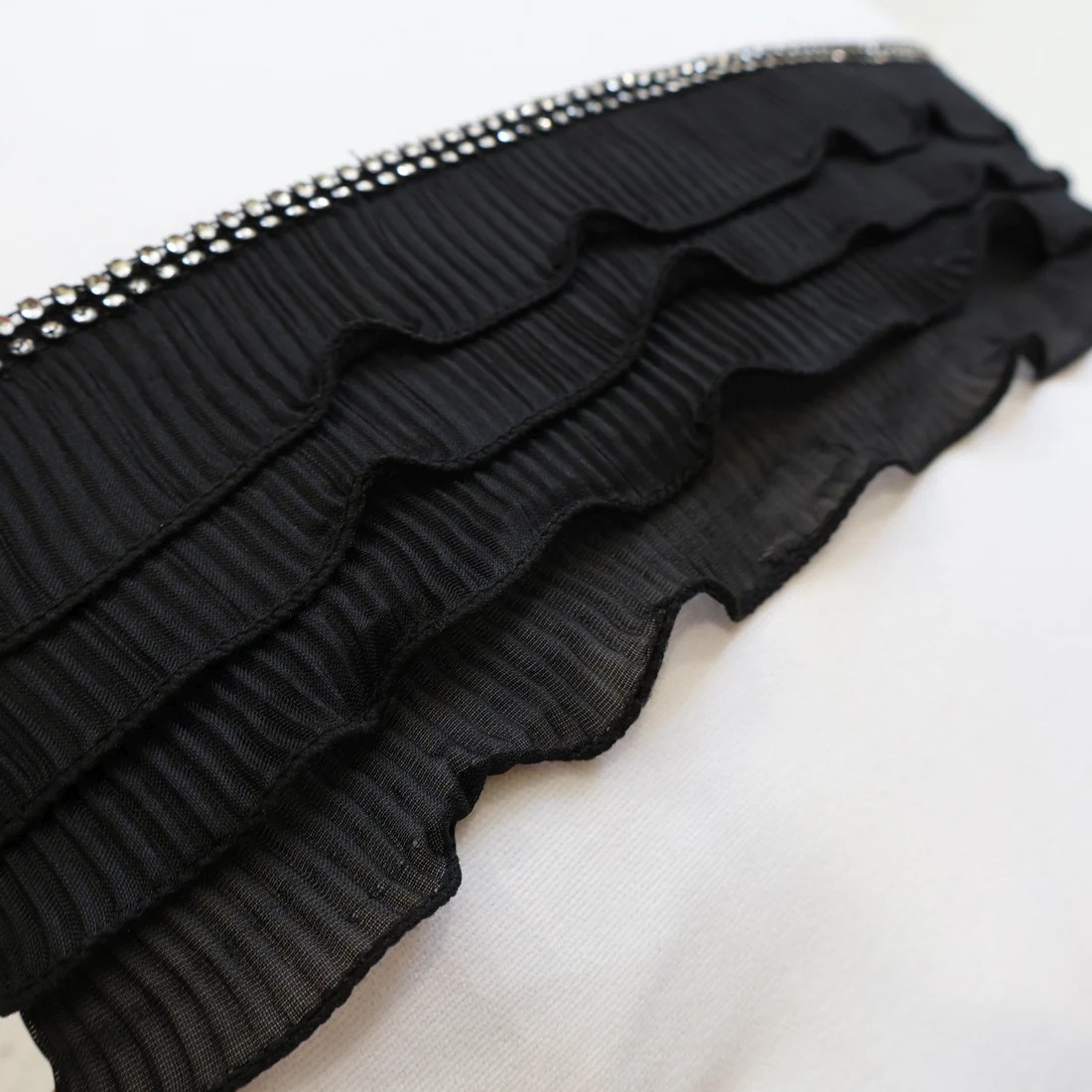 - Czarna falbanka dekoracyjna wszyta z jednej strony, pasek srebrnych cyrkonii
