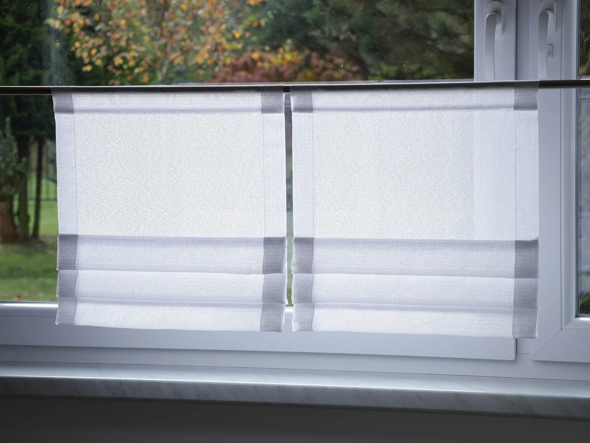- Biały woal sable, zakładki uszyte na stałe