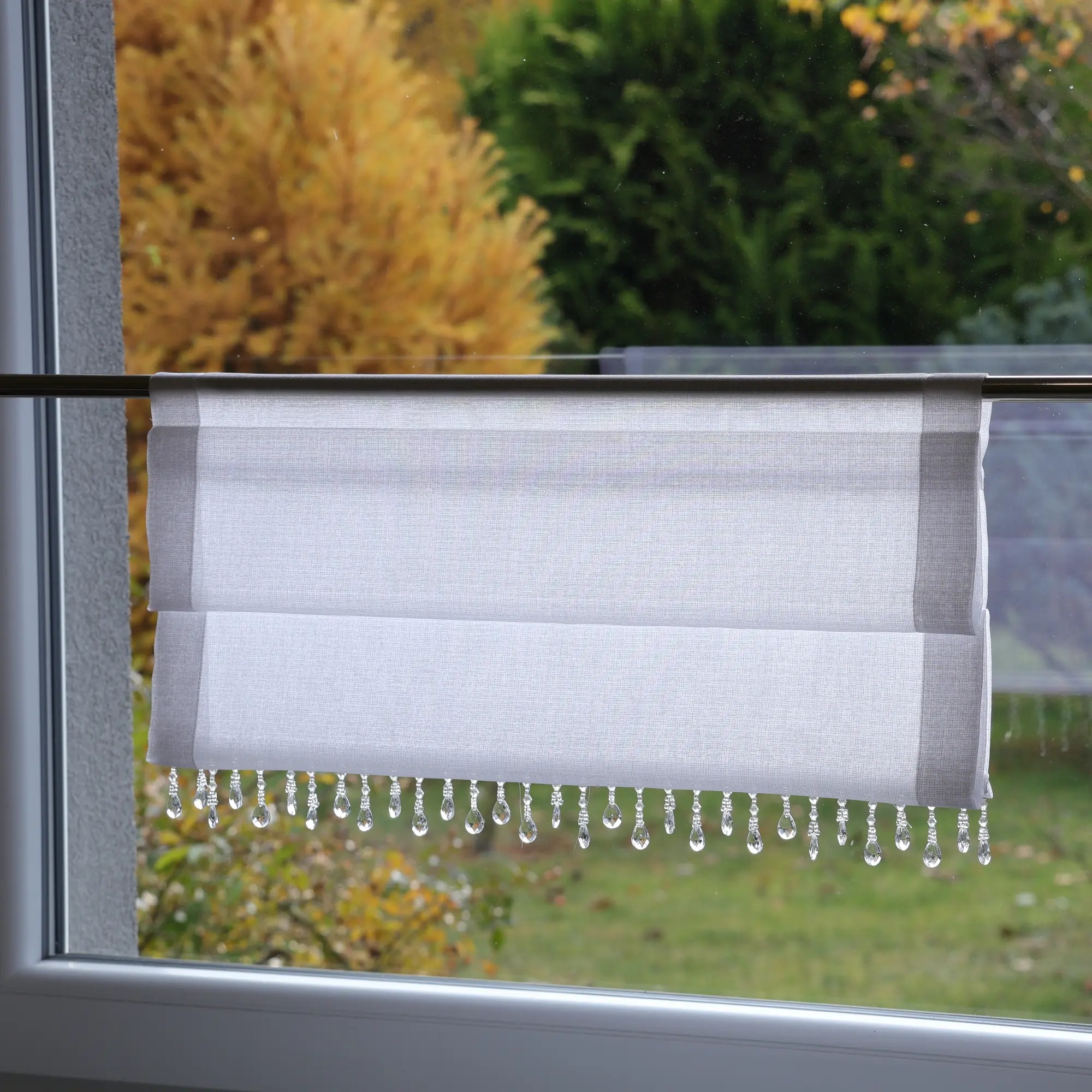Panelowa firana zazdrostka z delikatnymi koralikami doda oknu elegancji i lekkości. Idealna do kuchni i jadalni, tworząc stylowy i przytulny efekt.