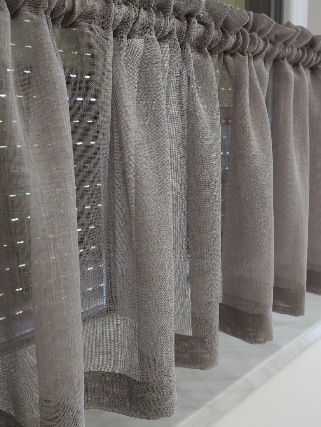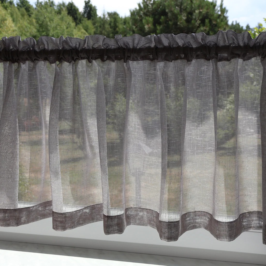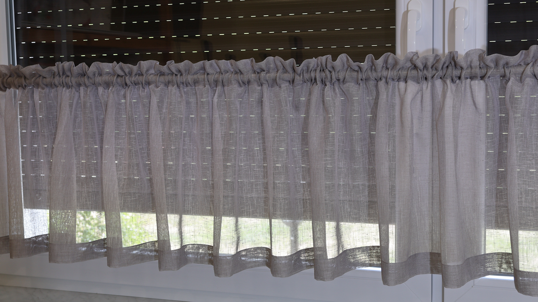 Firana zazdrostka szara do kuchni – tkanina o naturalnym wyglądzie z efektem lnu. Do powieszenia na tradycyjny patyczek lub mini karnisz. Możliwość wyboru wysokości oraz stopnia marszczenia według preferencji.