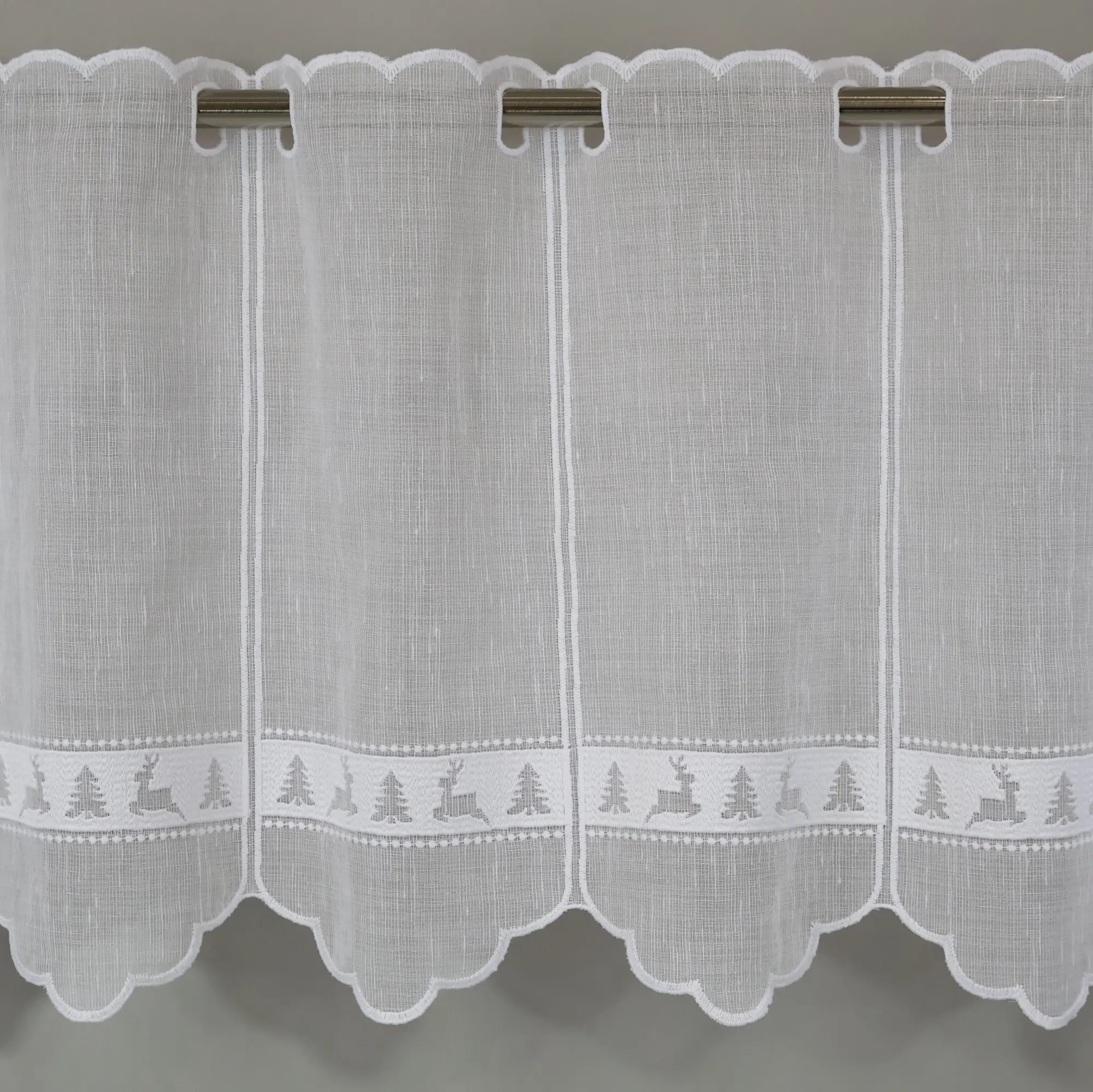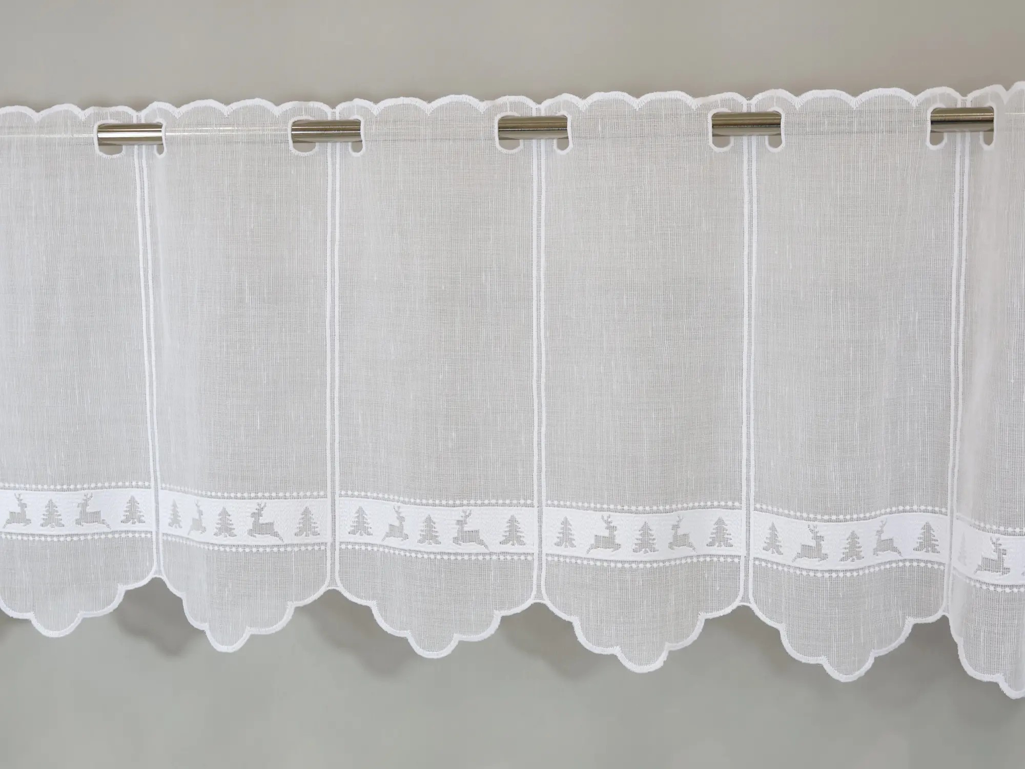 Firana zazdrostka świąteczna choinki renifery biały 346