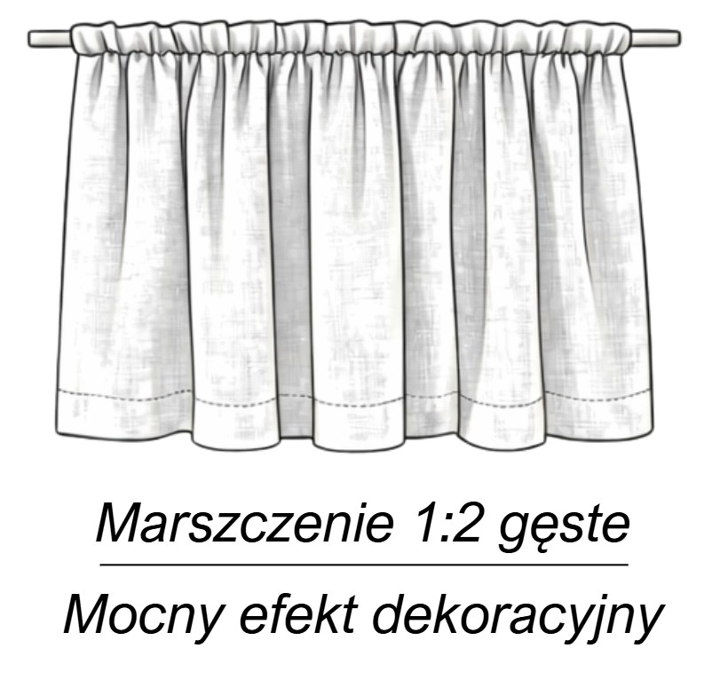 • Bez marszczenia 1:1 - zalecamy doliczyć kilka centymetrów do wymaganej szerokości, aby nie zabrakło materiału