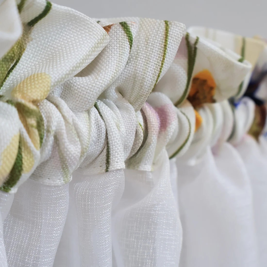 - Dół - zazdrostka marszczona do powieszenia poprzez tunel na patyczku, obszyta białą lamówką