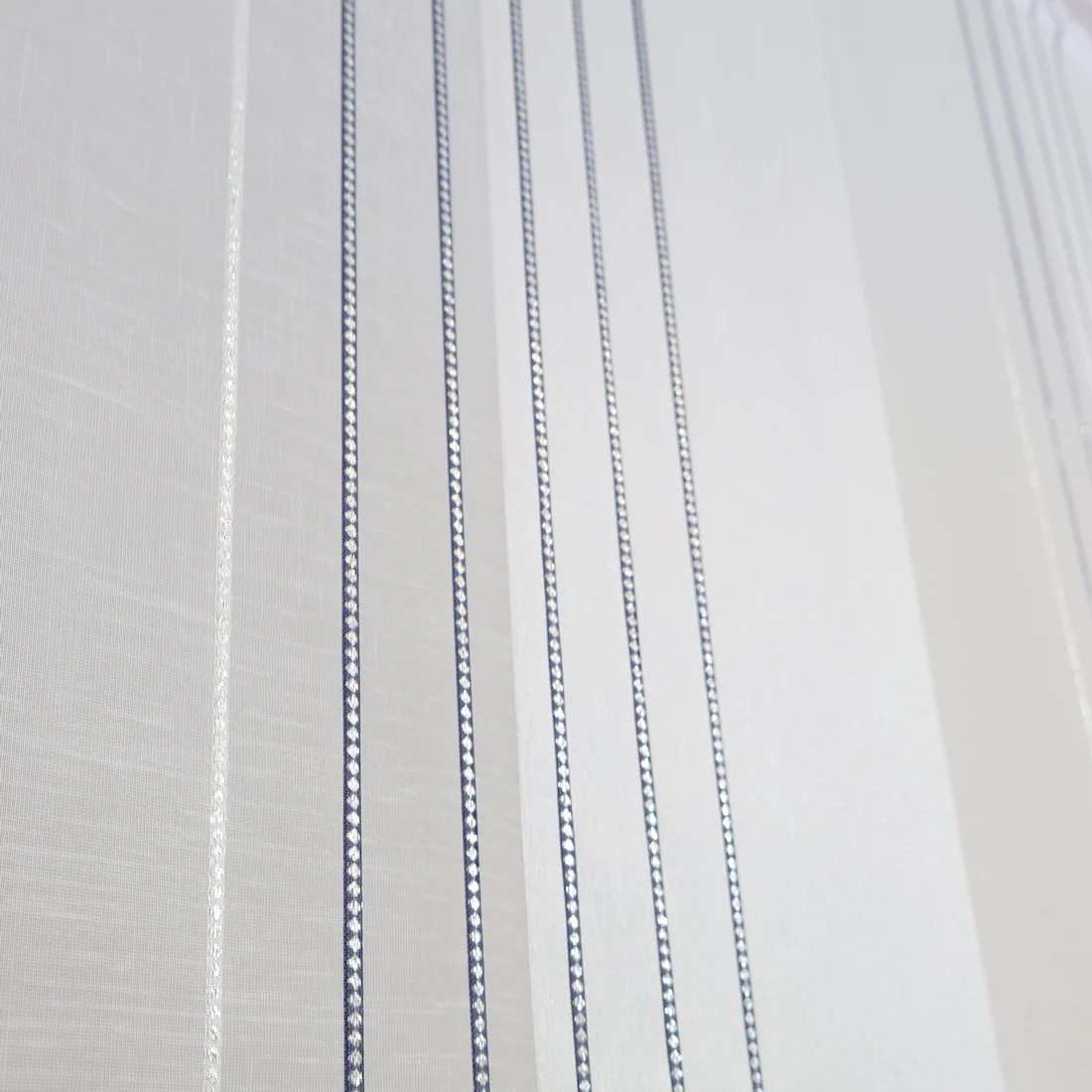 - Tkanina dekoracyjna biała, granatowe, srebrne paski