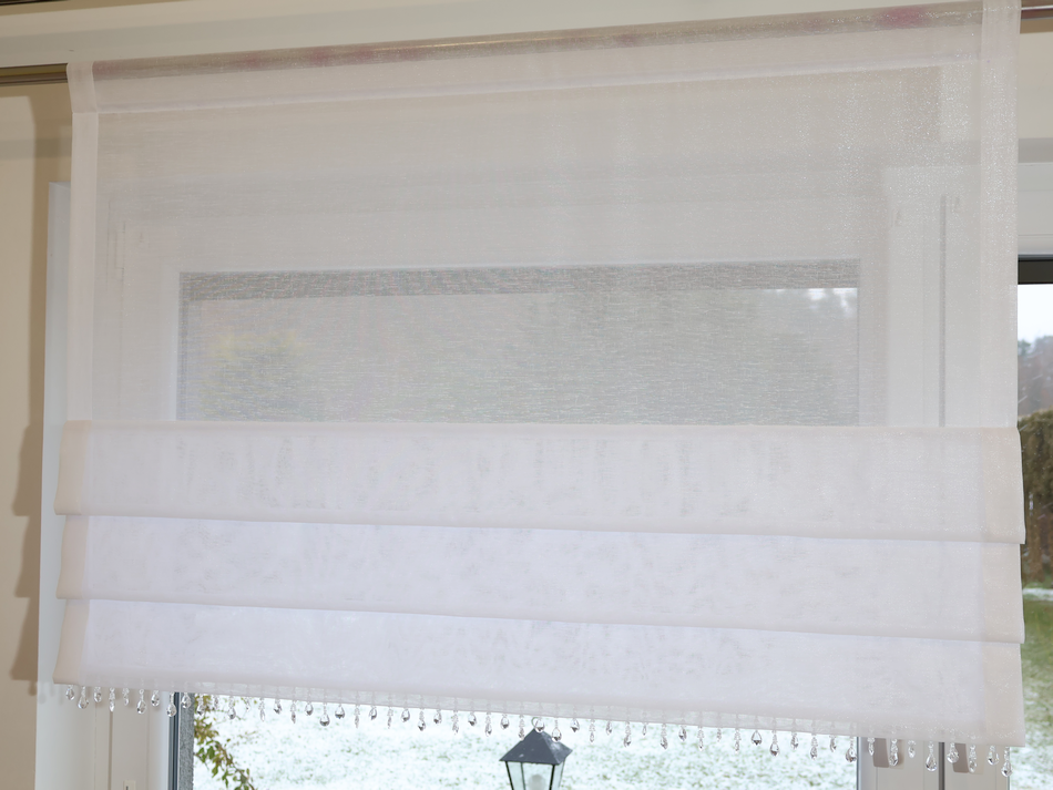 Firana panelowa biały batyst z koralikami 274