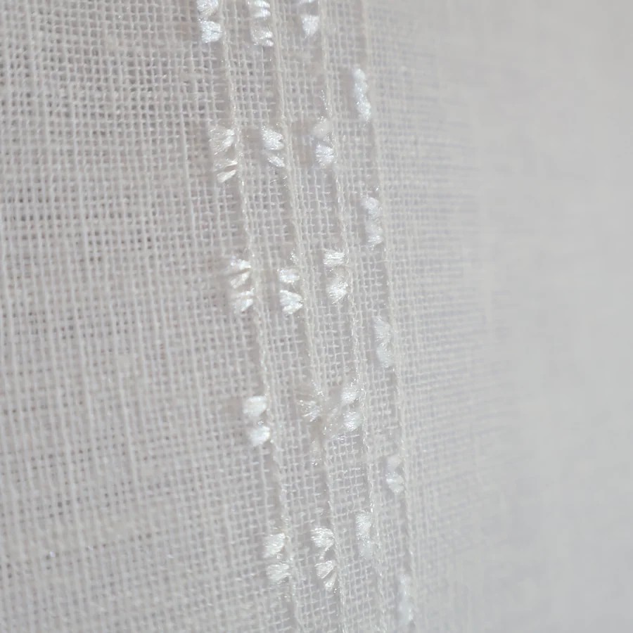 - Tkanina dekoracyjna o naturalnym wyglądzie, biała, wzór pasowy pionowy