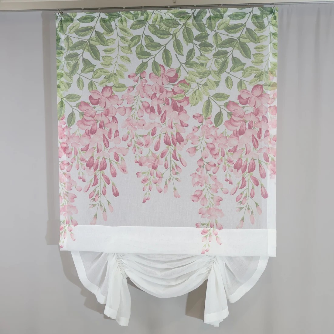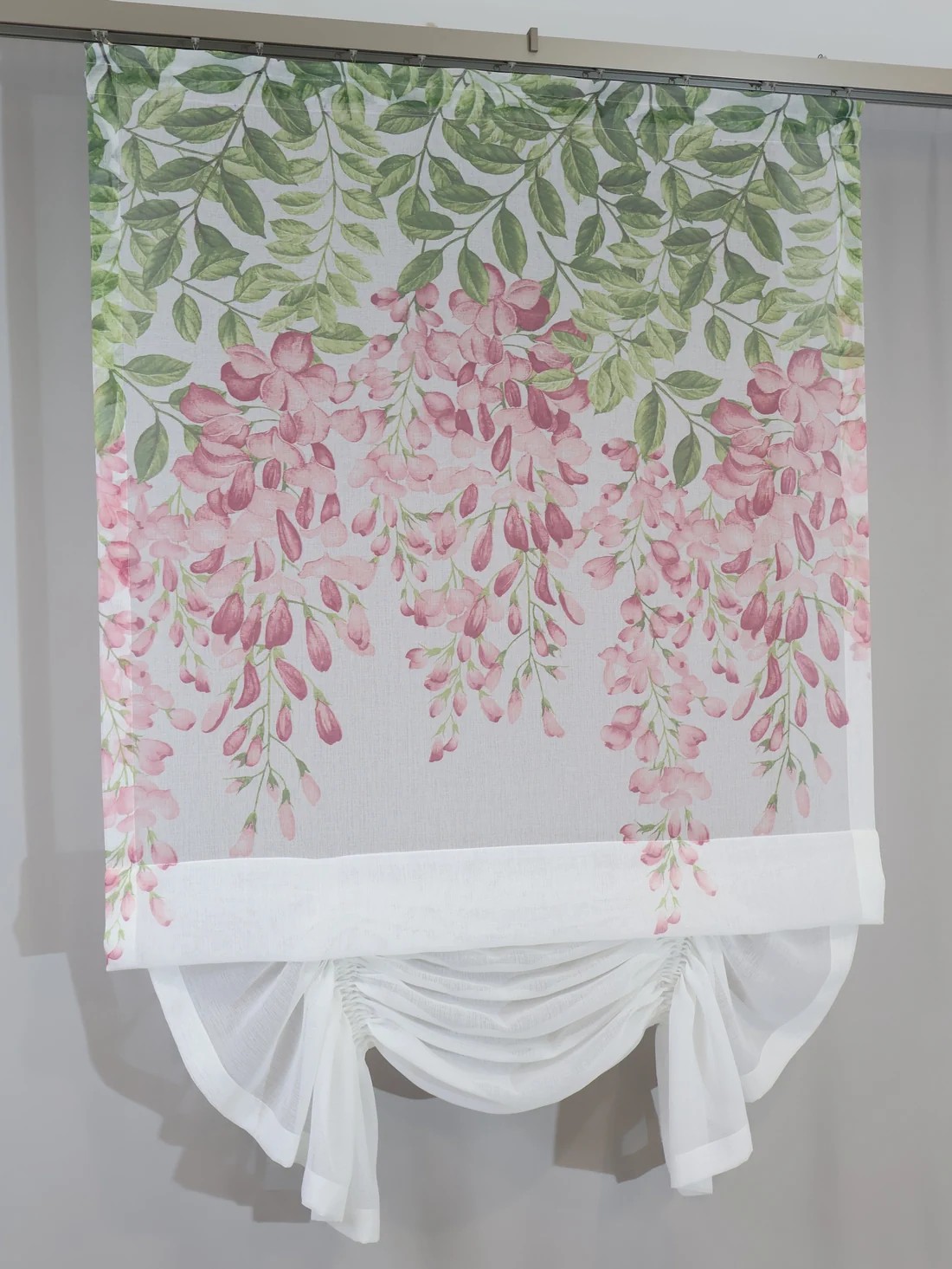 - Wysokość mierzymy od miejsca powieszenia do najdalej wysuniętego miejsca panela (zwisającej części materiału)