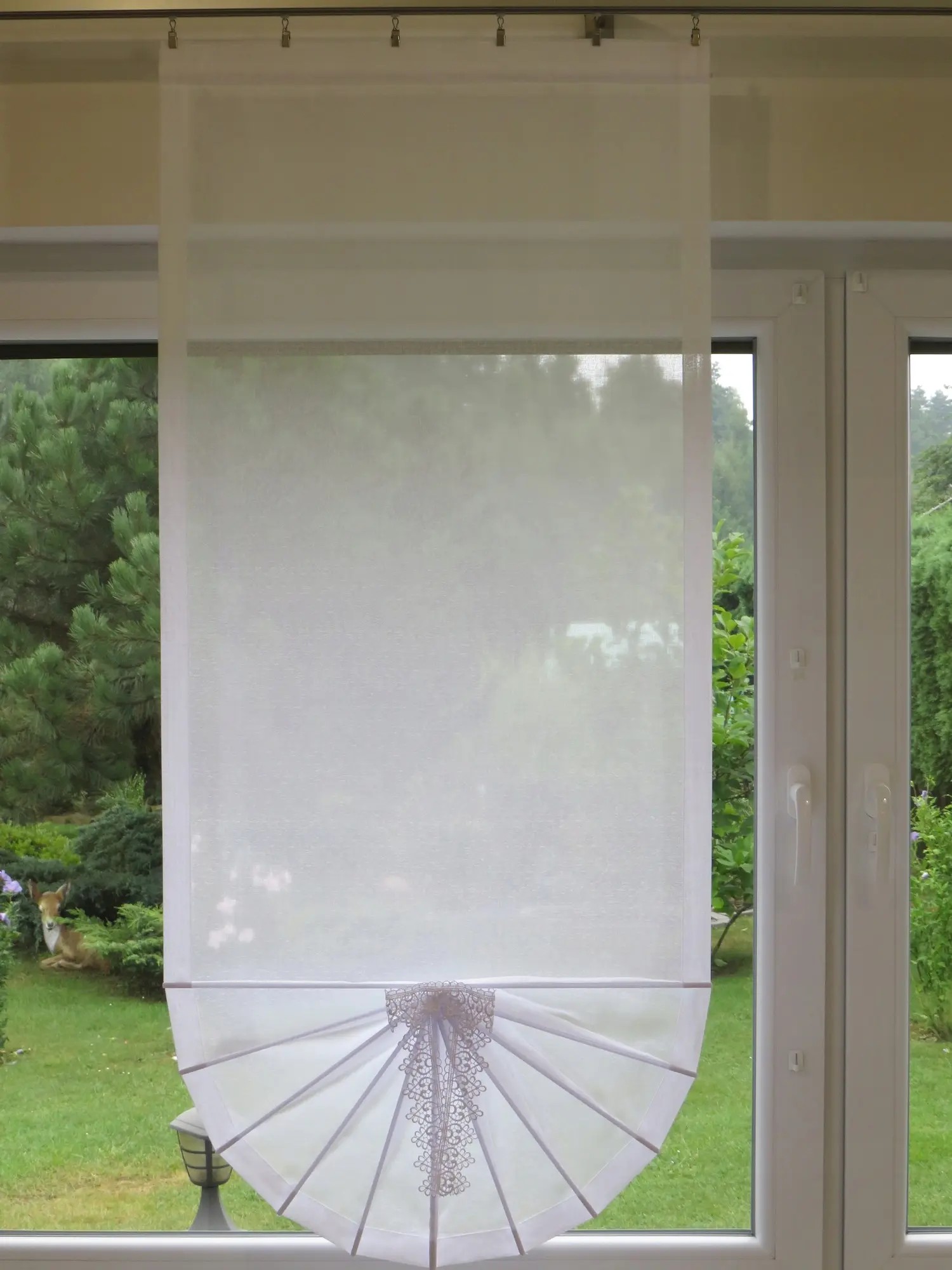 - W konstrukcji wachlarza znajdują się plastikowe rurki. Można je w każdej chwili wyciągnąć i prać firankę