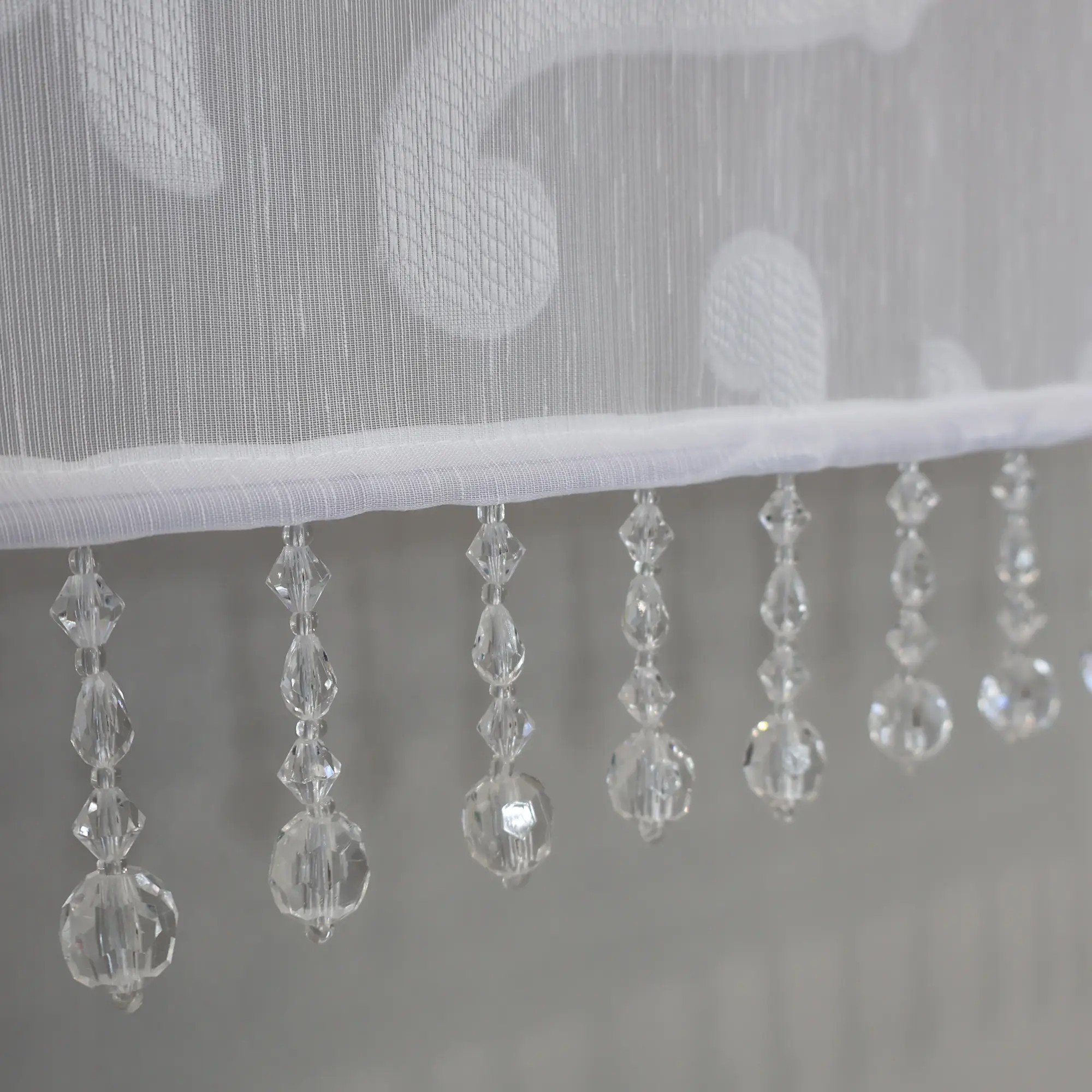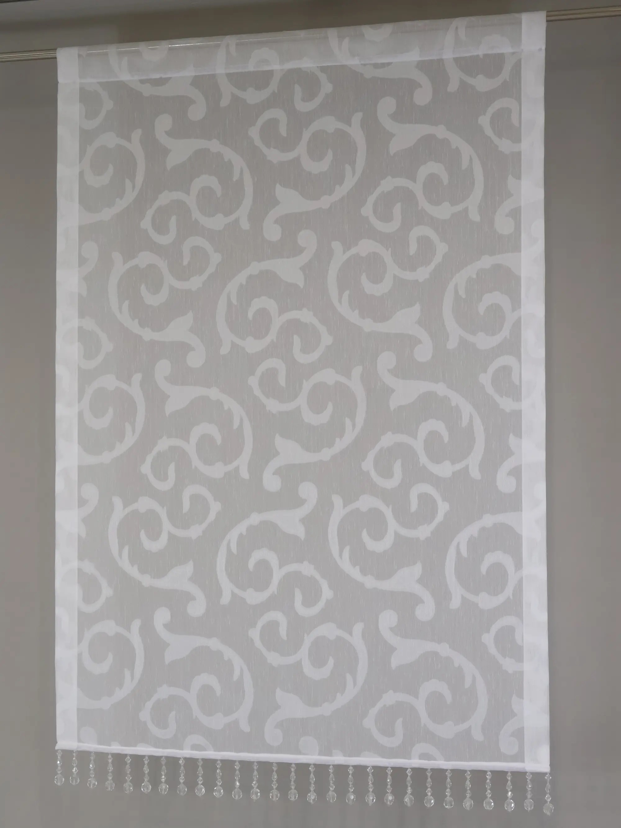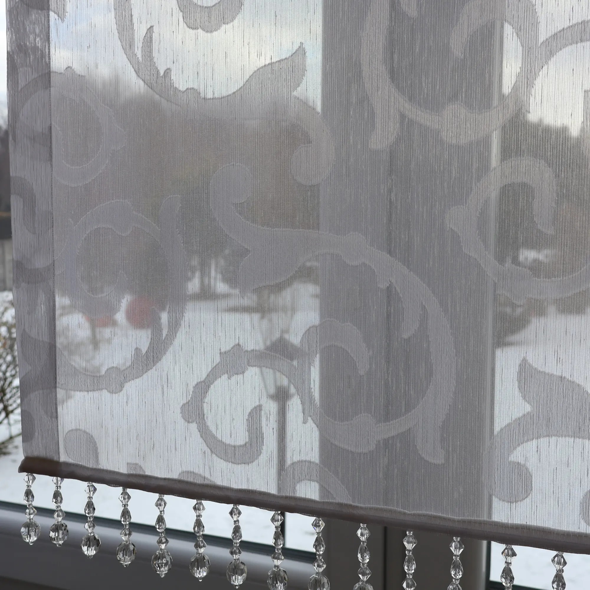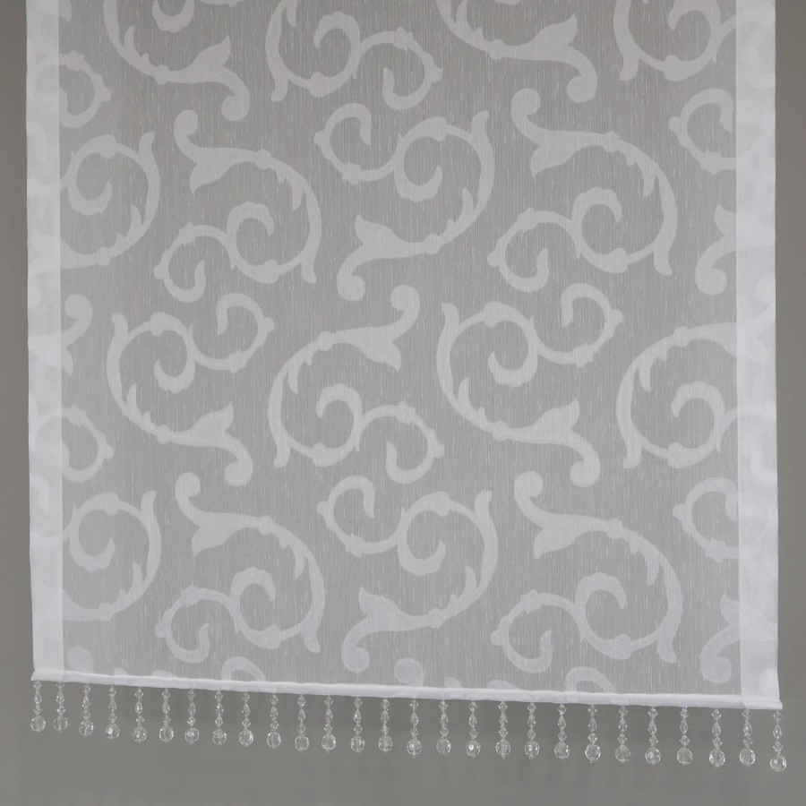 Firana panelowa ESY FLORESY 356 z ozdobnymi koralikami to stylowa dekoracja okna, łącząca delikatność tkaniny z efektownym, biżuteryjnym akcentem. Idealna do nowoczesnych i eleganckich wnętrz.
