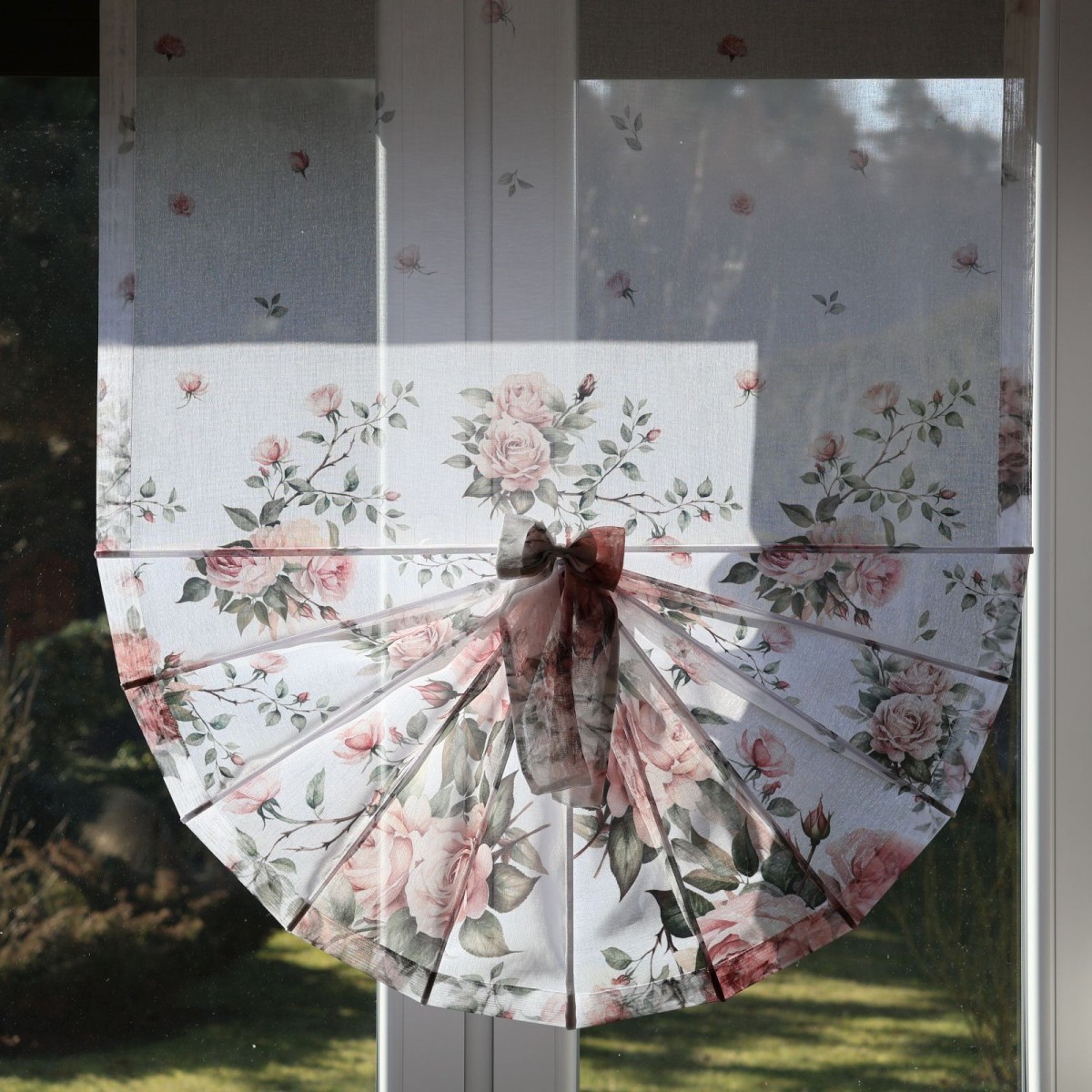 Firana panelowa typu „wachlarz” z delikatnym motywem róż to wyjątkowa dekoracja okna o romantycznym charakterze. Subtelny, kwiatowy wzór w pastelowych odcieniach nadaje wnętrzu lekkości i przytulnej elegancji.