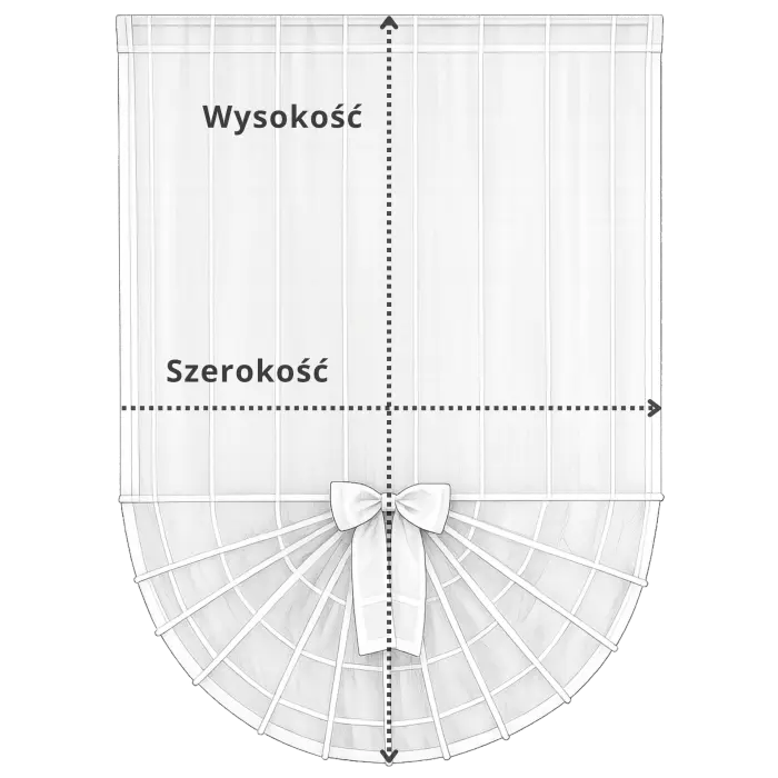Efektowny dół w formie rozłożonego wachlarza, wykończony dekoracyjną kokardą, tworzy piękny akcent aranżacyjny i sprawia, że firana przyciąga wzrok. Model doskonale sprawdzi się w kuchni, jadalni oraz wnętrzach w stylu prowansalskim, shabby chic lub klasycznym.