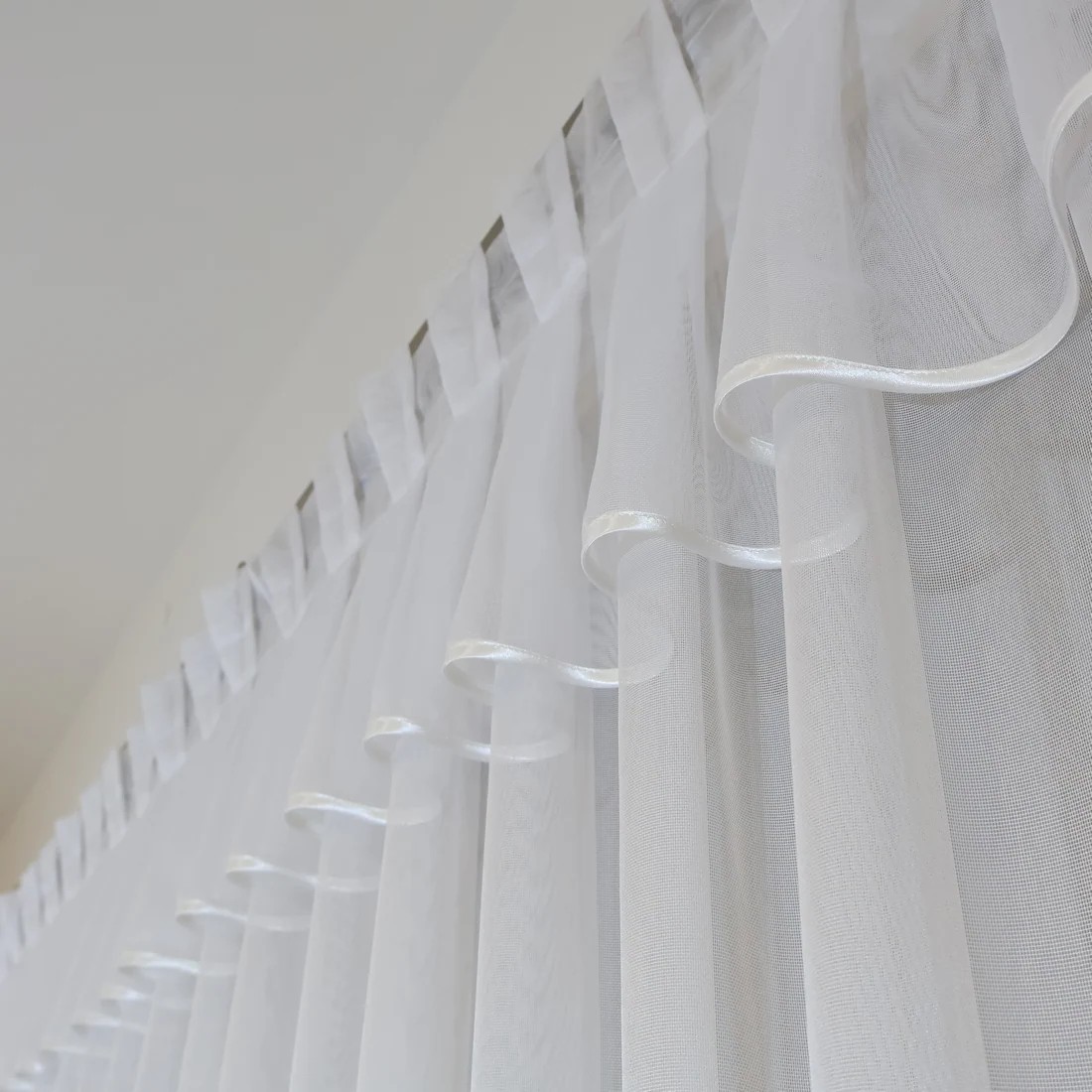- Uszyta na taśmie tzw. podwójna zakładka, marszczenie 1:2, bez możliwości regulacji taśmy, uszyta na gotowo