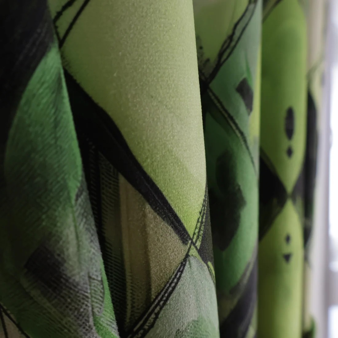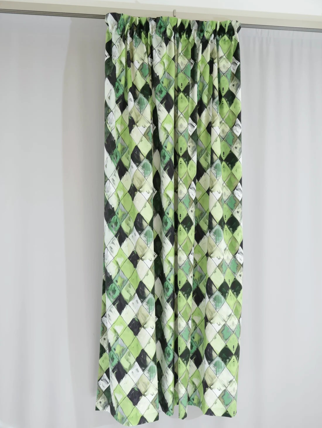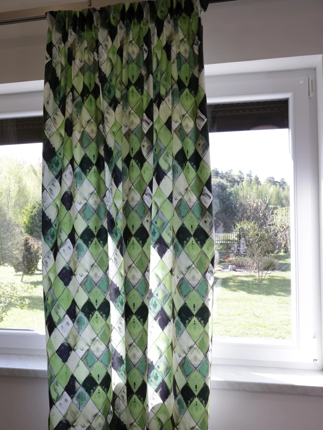 Zasłona w romby w odcieniach zieleni to mocny, nowoczesny akcent we wnętrzu. Efekt zamszu nadaje tkaninie głębi i eleganckiego charakteru.