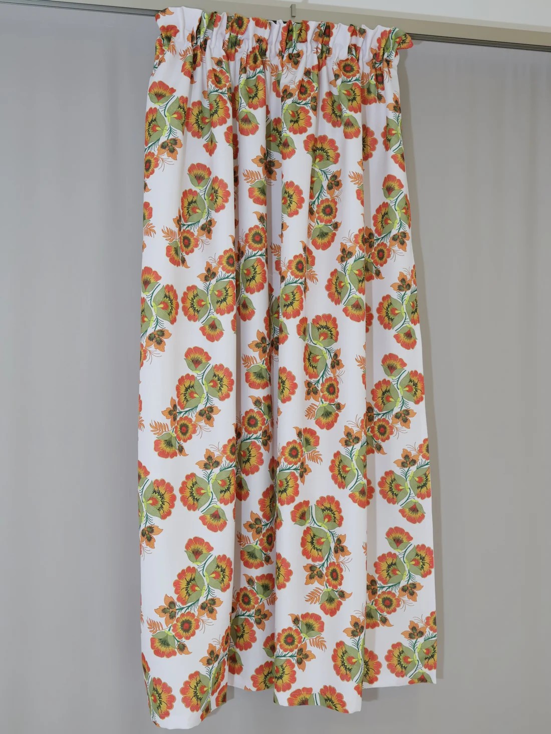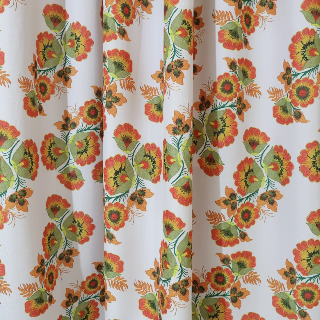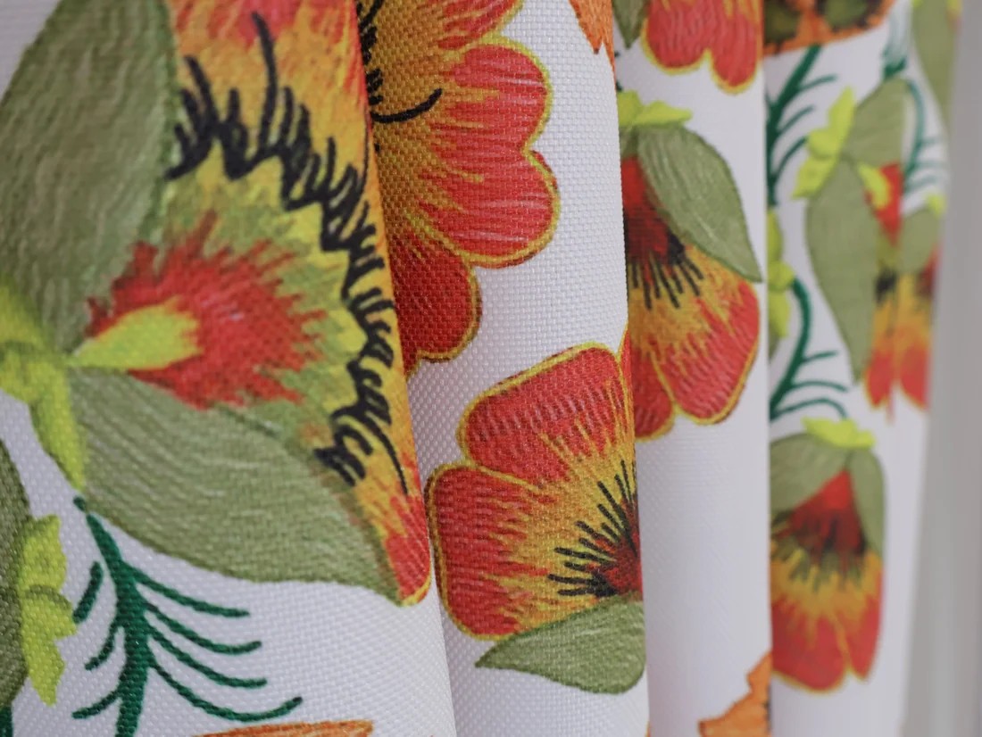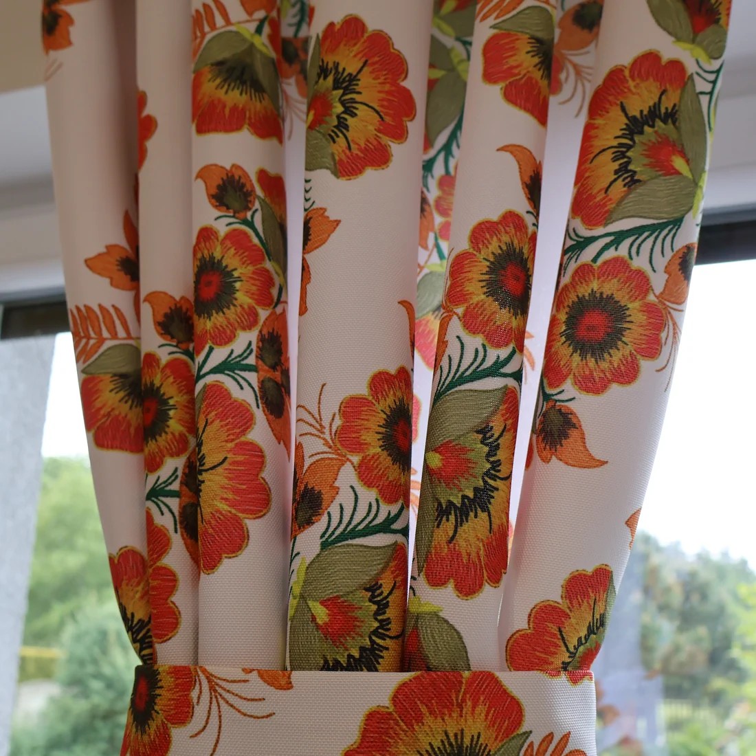 Zasłona w stylu ludowym – kolorowe kwiaty folk na jasnym tle