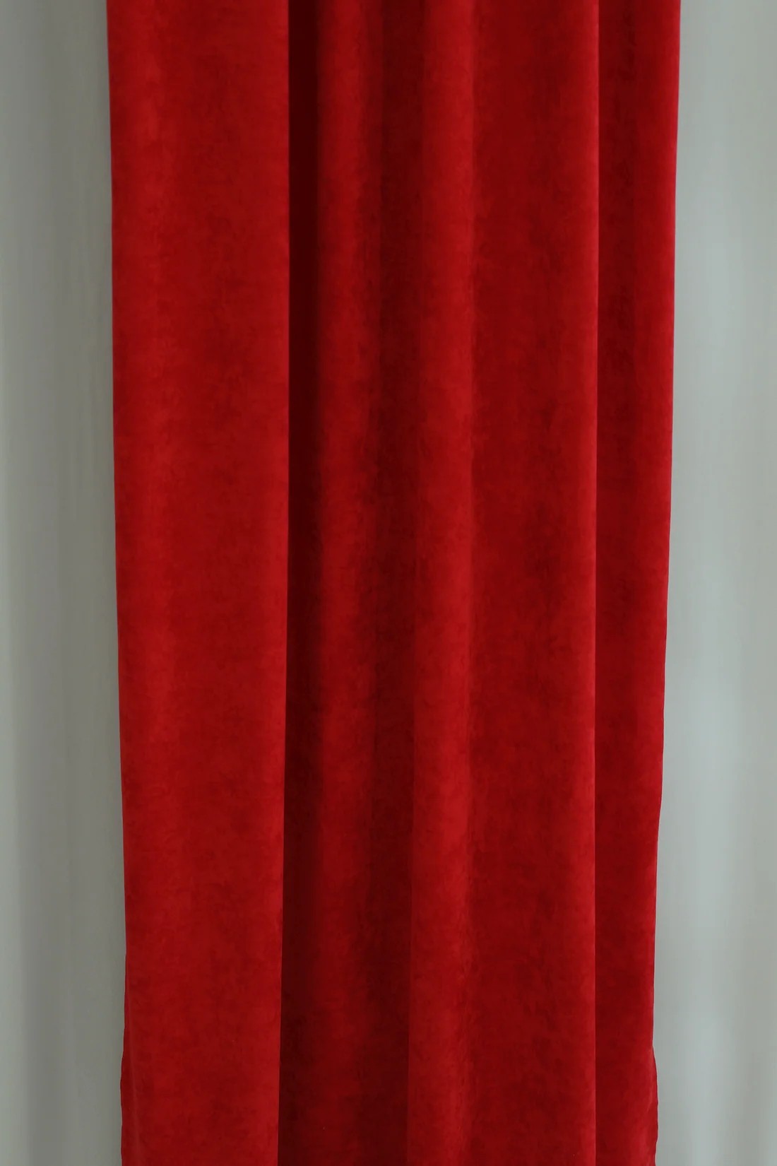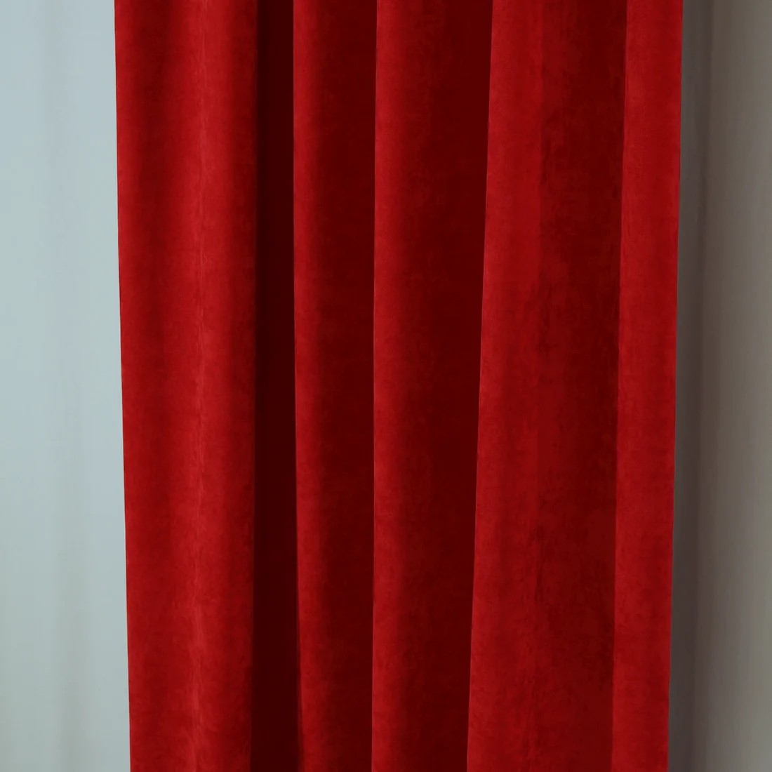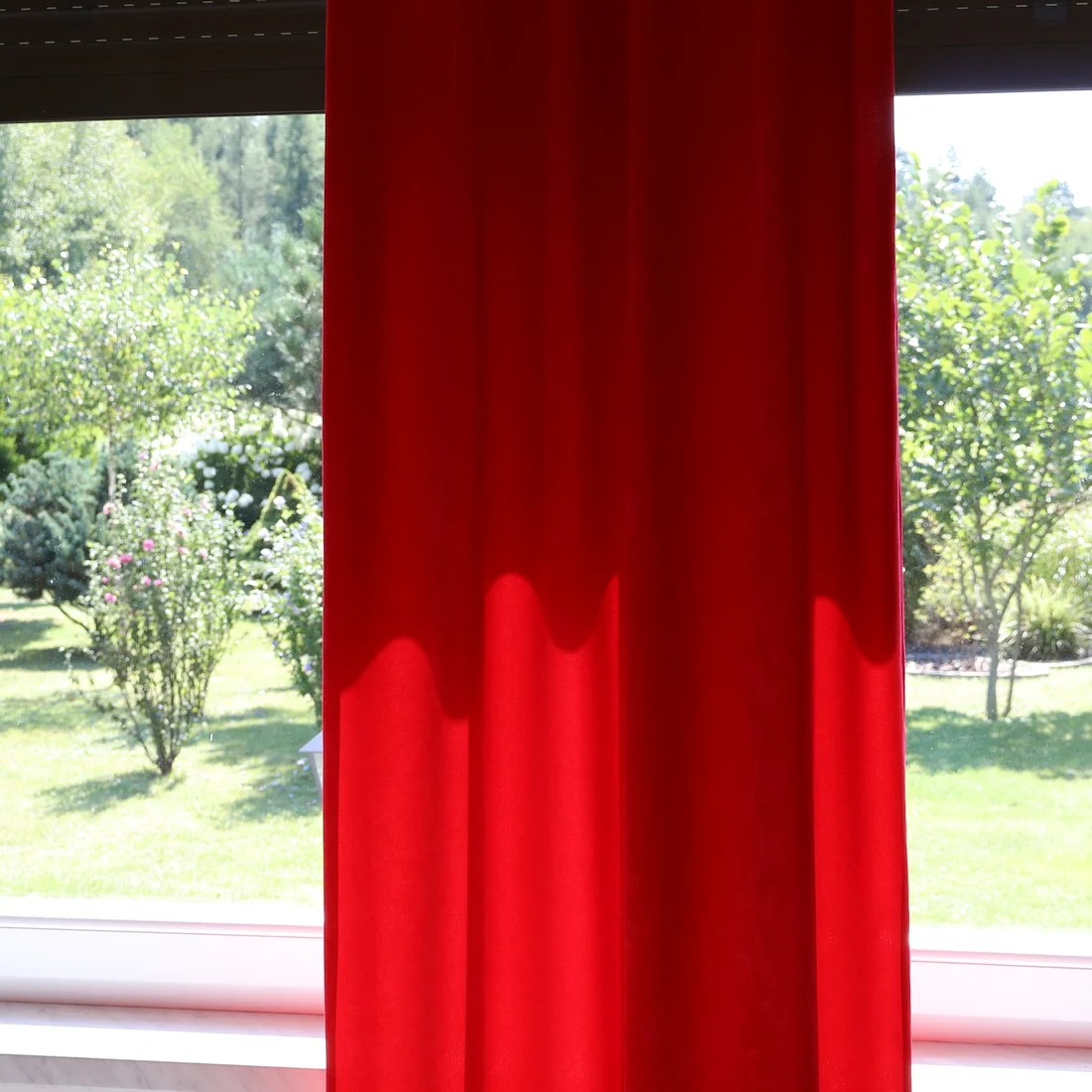 Zasłona bordowo-czerwona z efektem zamszu – elegancka tkanina dekoracyjna imitująca zamsz, miękka i przyjemna w dotyku. Wykończenie oraz sposób powieszenia do wyboru